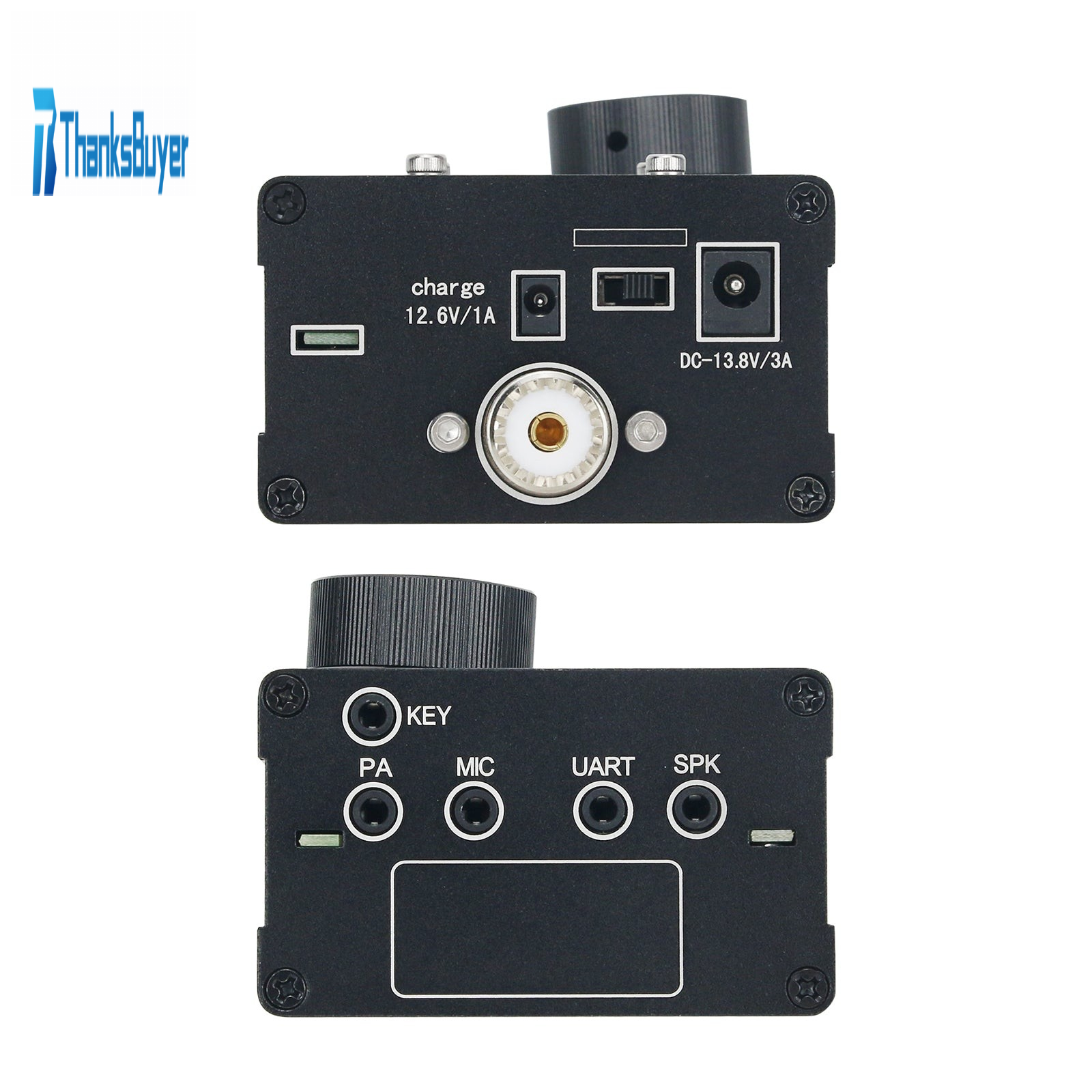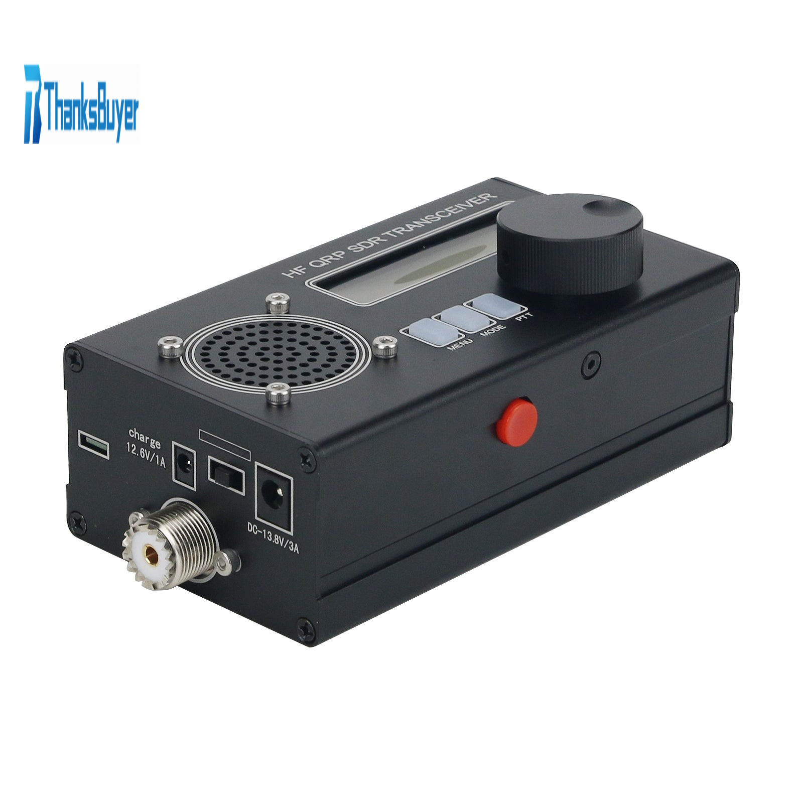 This QRP SSB/CW shortwave transceiver has a 1602 screen, built-in battery, a charger, built-in microphone and speaker. It can be connected to automatic buttons. It can also CW decoding.