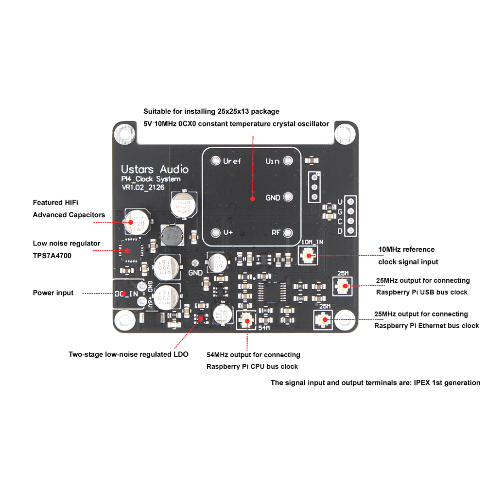 Ustars Audio PI4_Clock System Clock Board Without OCXO For Raspberry Pi 4B Change Crystal Oscillator