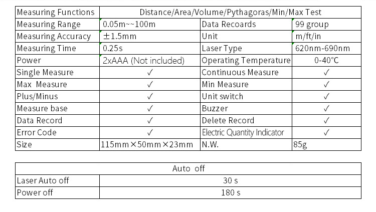 - Laser ranging, no need to contact, convenient and trouble-free. Accurate measurement, error to millimeter level
