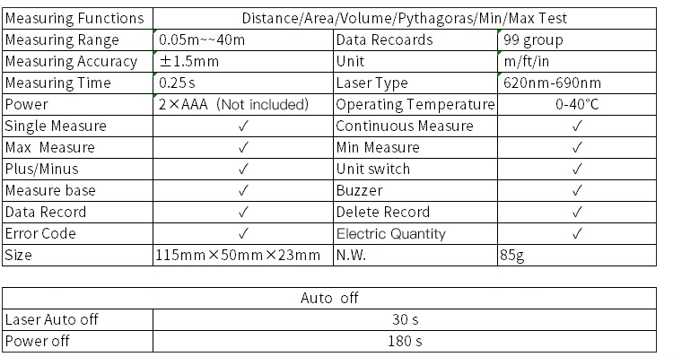 UYIGAO UA40M Handheld Laser Distance Meter Laser Distance Measurer Range 0.05-40M/0.16-131.2FT