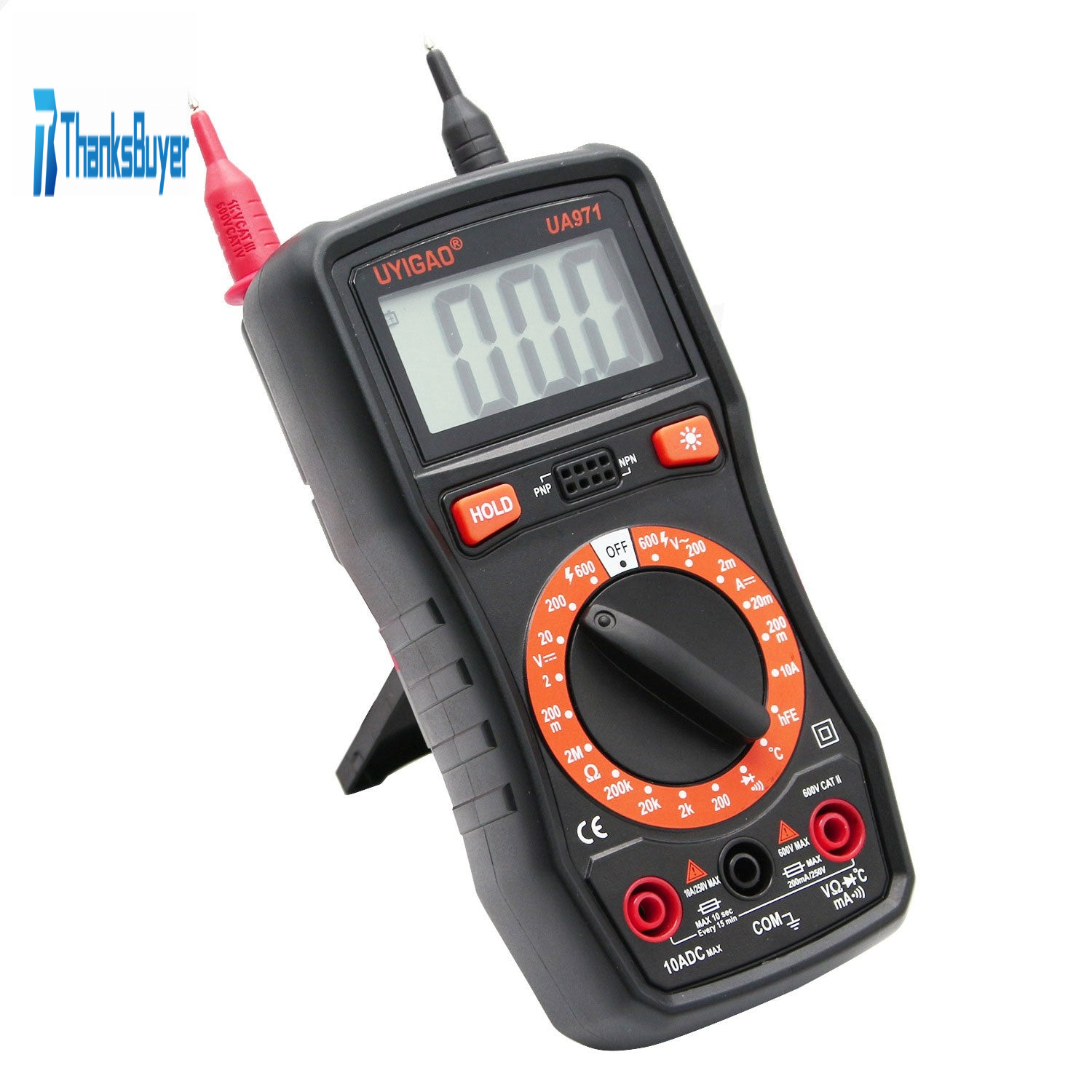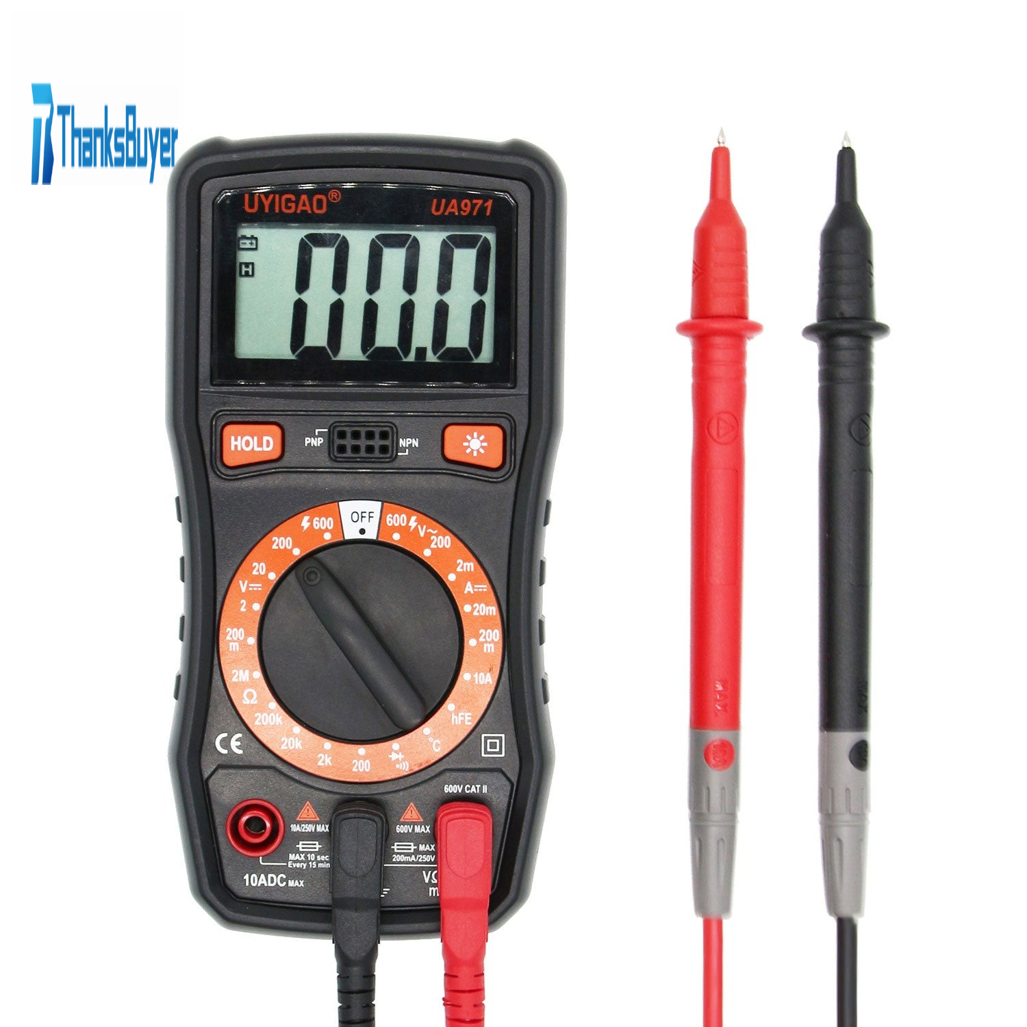 - Clear big font/with buzzer/diode/triode/data hold/backlight lock/auto power off