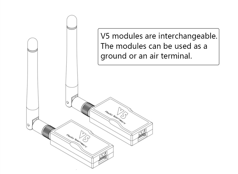 - Telemetry radio: 3DR V5 telemetry radio modules with an OTG cable for APM 2.8 /Pixhawk 2.4.8.