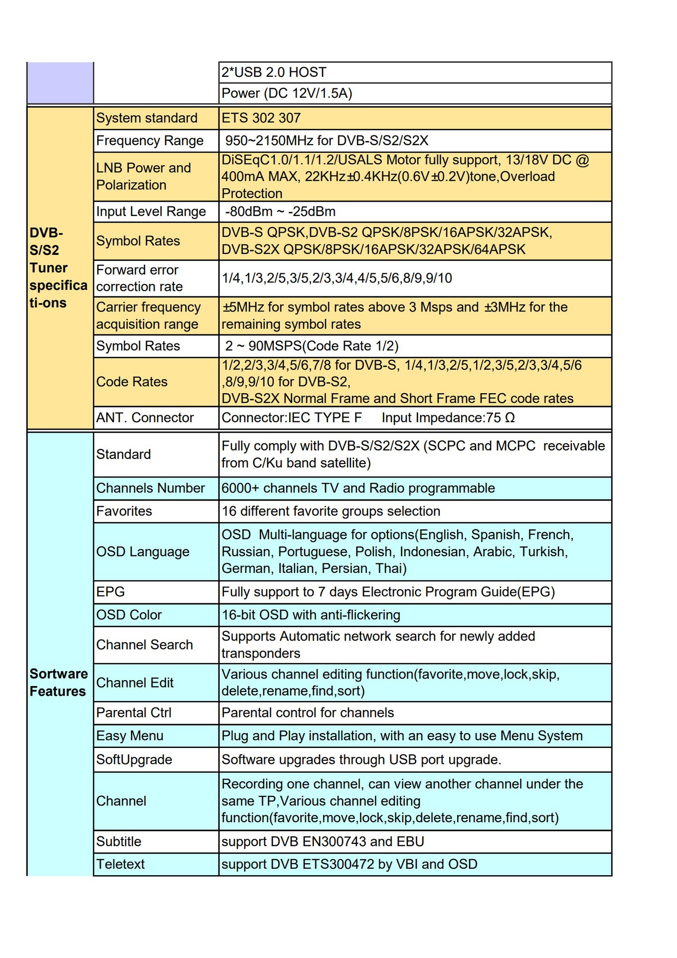 - Support for Unicable, for DiSEqC1.0/1.1/1.2/USALS Motor fully support