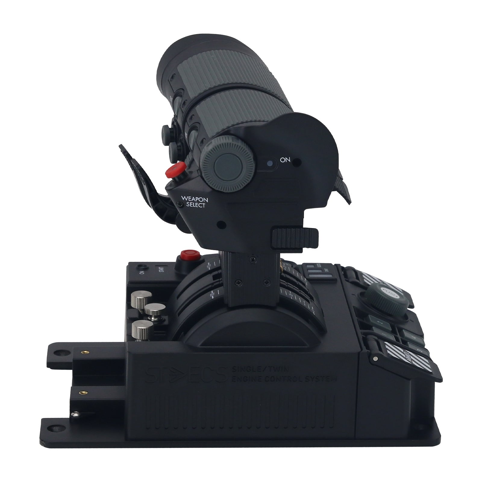 Based on a solid steel platform, the STECS Mini Plus can be used as a desktop stand-alone device, or mounted to a sim rig or chair mount. Includes MFH (Multifunctional Holder) compatible fixture to connect frontal extension modules.