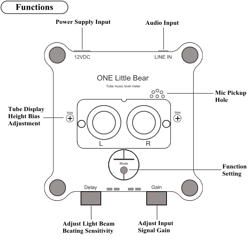 - Support Gain adjustment, the height of spectrum display height can be set at will, 0dB position can be set at random when recording is needed. GAIN setting is controlled by the microcontroller internal digital adjustment, has no physical contact with the input audio signal then has no impact on sound quality.