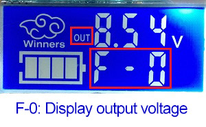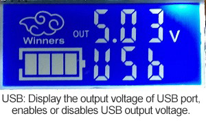 4. USB mode: display USB output voltage and turn on or off the USB output;