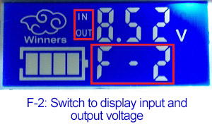 In the case of power failure, press and hold "SET" button, power on, enter voltage calibration mode, LCD screen starts to flash. Release the SET button, press the "SET" button to increase, "OK" to decrease. And after calibration, it is correct input terminal voltage. For example, if input voltage is 12.65V, adjust the current voltage to 12.65V. It is automatically saved after 2 seconds, and the calibration is completed when the power is turned off!