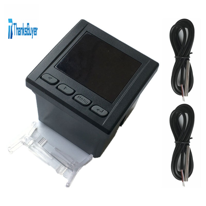- Connect two probes to control the dual-way output. The temperature of the two probes is collected. One-way output controls cooling and heating. The two-way control can set the working modes, including cooling, heating, alarm and temperature difference modes.