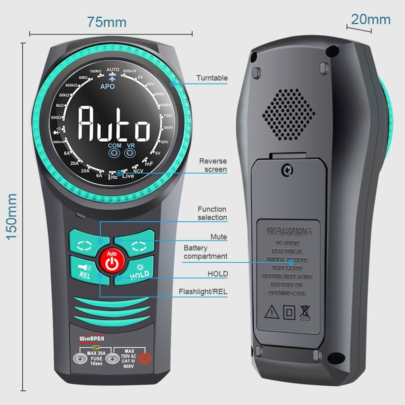 WINAPEX 189C/189D Portable Rotary Dial Smart Digital Multimeter 6000 Counts NCV Measurement + Optional Thermocouple
