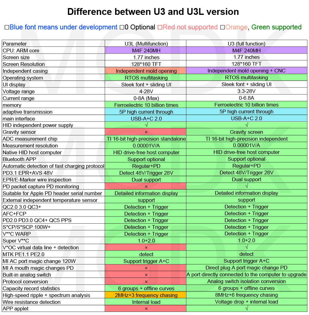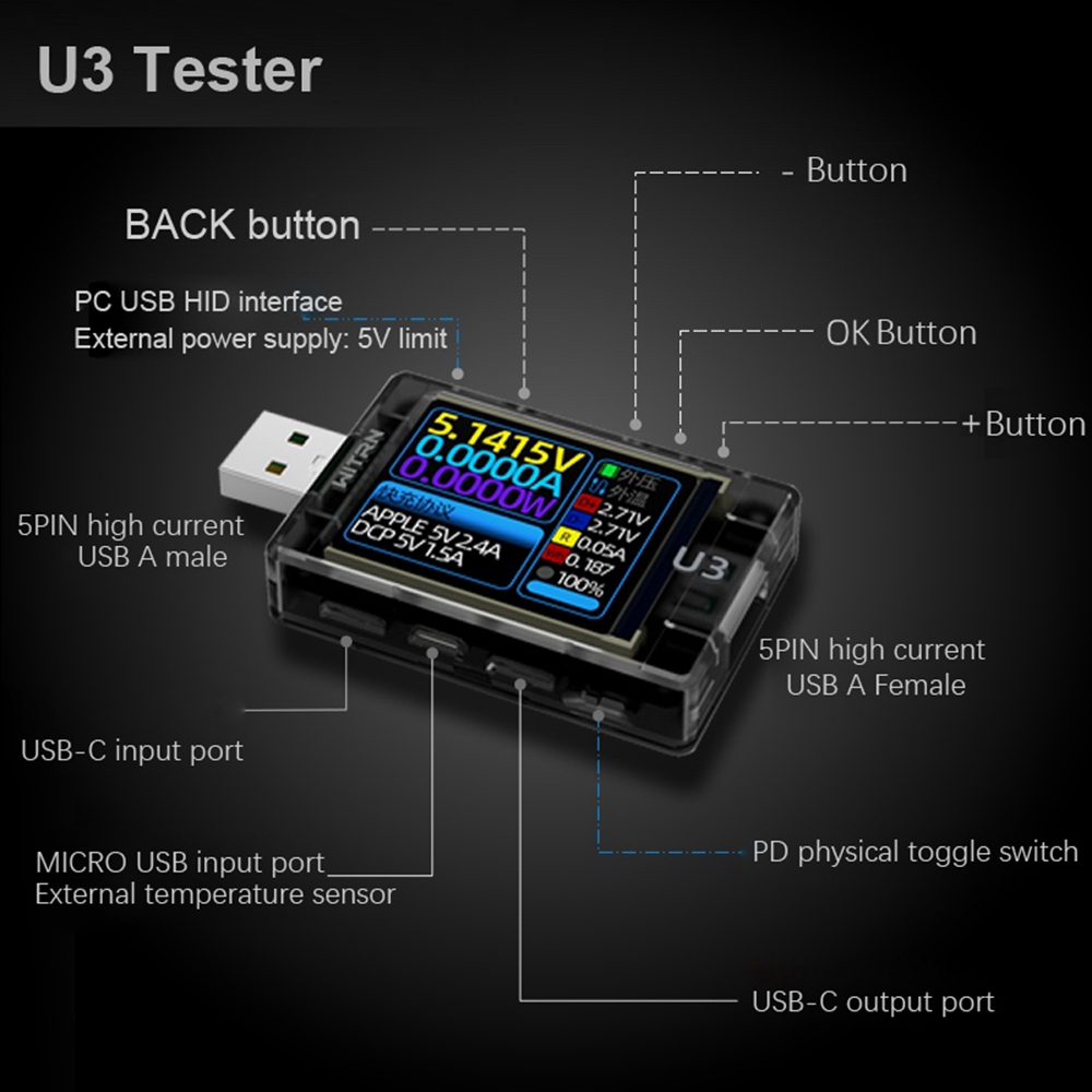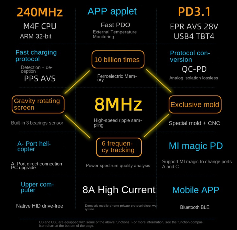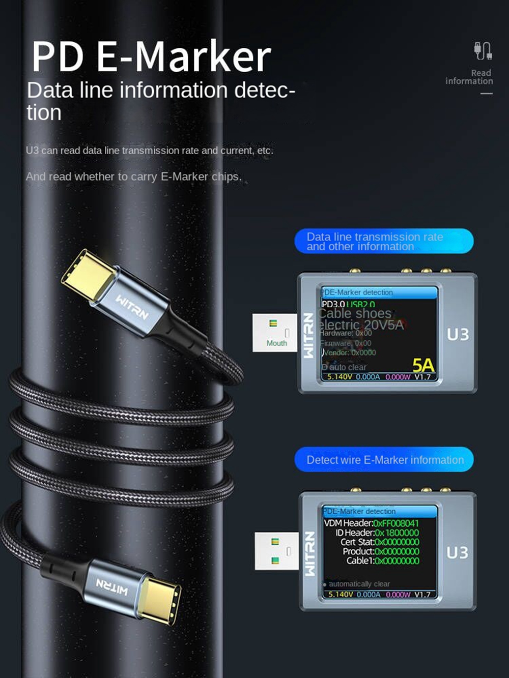 - Support detecting chip data for E-Marker through TYPE-C data cable. Support the internal resistance measurement of data cable