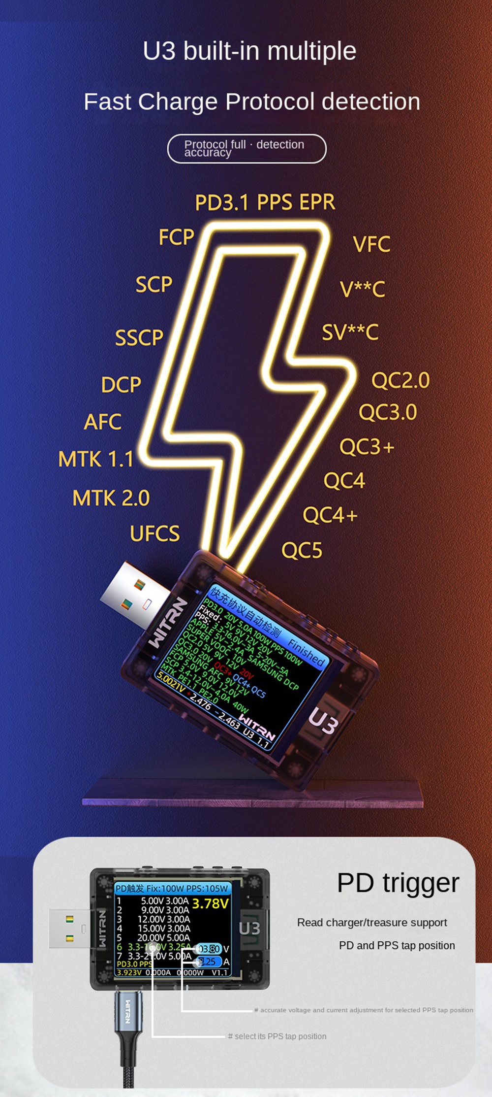 WITRN U3L (PRO) CNC Grey USB Tester Voltage Current Meter PD3.1 Cheater PPS Fast Charging UFCS Aging EPR