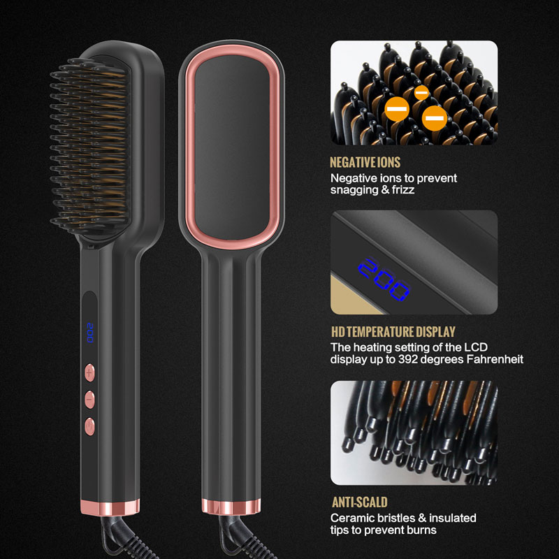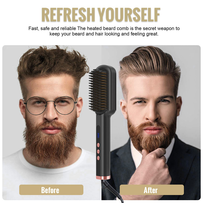WT-070 Anion Hair Straightener Beard Straightener Heated Beard Brush Shaping Tool With LED Display