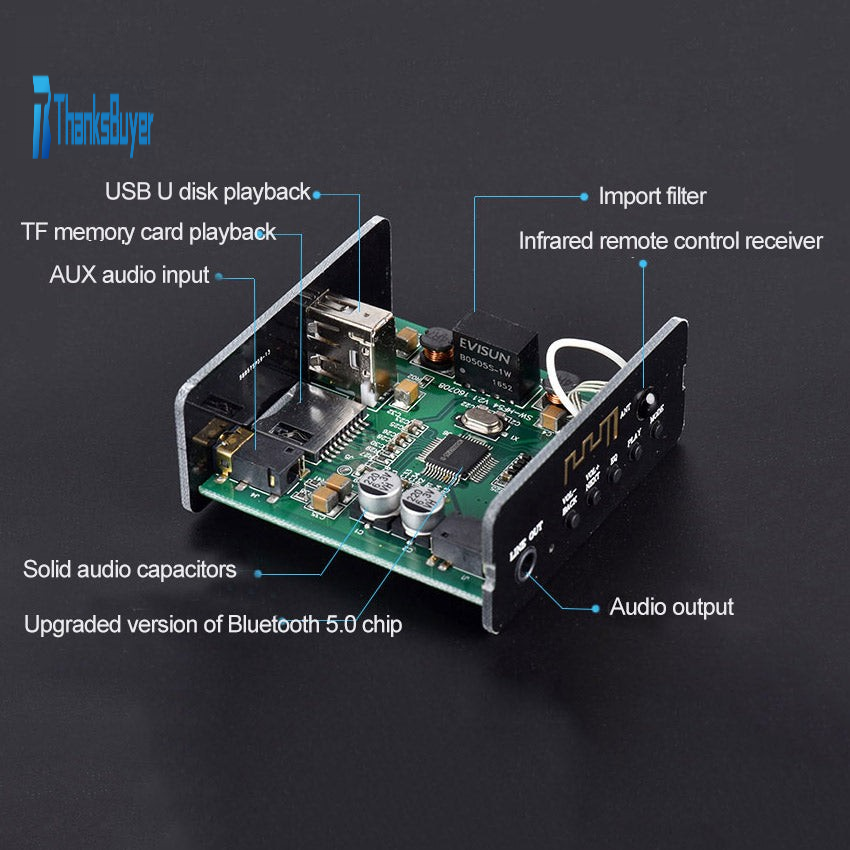 - Premium components: For USB U disk playing. For TF card playing. For AUX audio input. Imported filter. IR remote control receiver. Solid state audio capacitors. Upgraded Bluetooth 5.0 chip. With LINE OUT audio output port.
