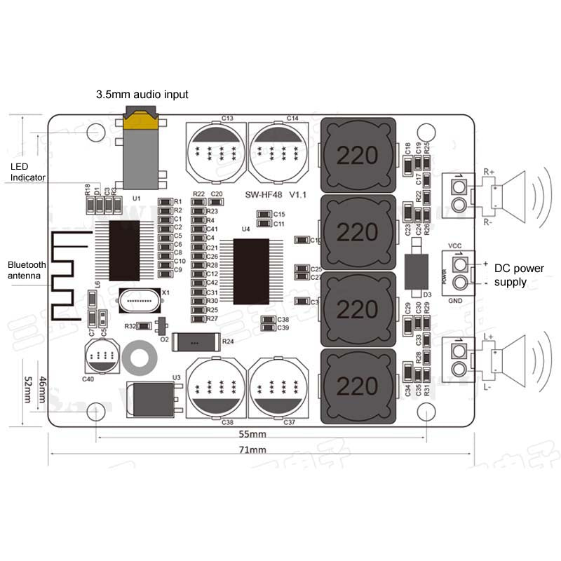 - Original TPA3118 Chip: Provides all-around protections, including short-circuit, over-temperature, over-voltage, under-voltage protections