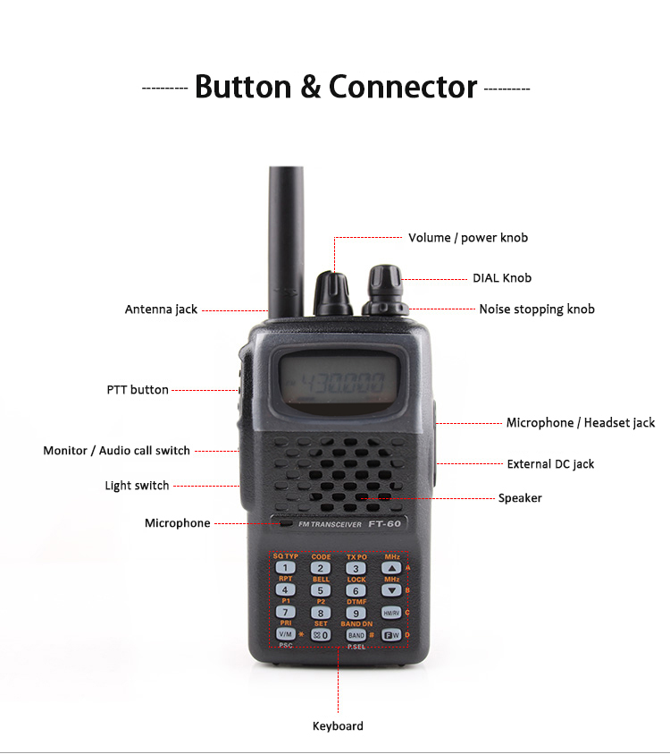 2. High power output 5W. The powerful transmitter of the FT-60R can provide a maximum power output of 5W in the 144MHz and 430MHz frequency bands. In order to improve the battery working time, the power can be reduced to 2W and 0.5W. At the same time, it also provides a transmit power saving mode (TBS), which can automatically reduce the power when using a nearby repeater with a strong signal