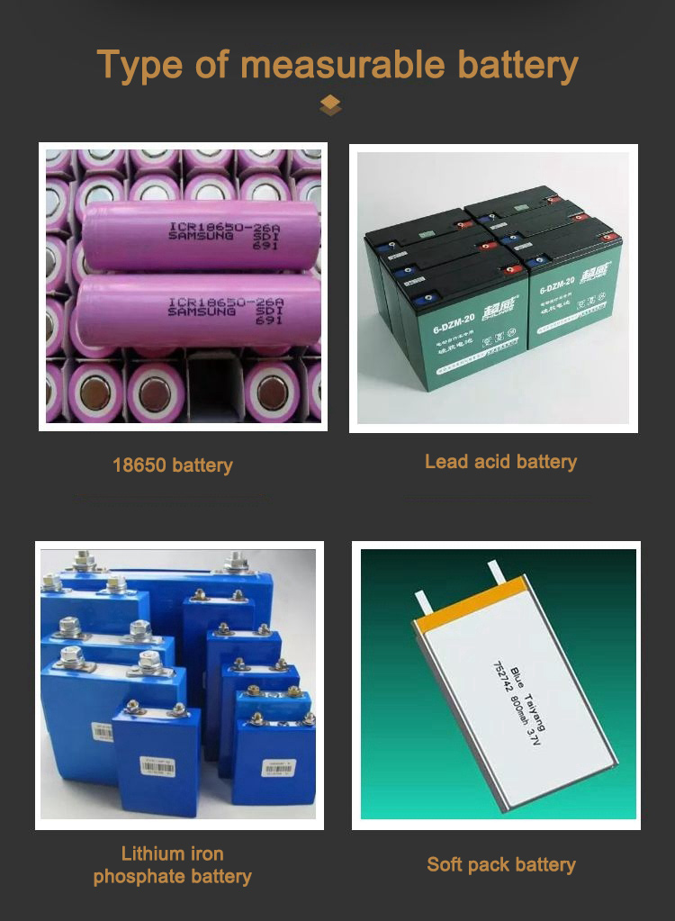 - Common lead acid, lithium ion, lithium polymer, lithium iron phosphate, alkaline, dry battery, nickel hydrogen, nickel cadmium, button batteries and battery packs can be tested to meet the test requirements of most common batteries. It can also be used for the measurement of four-wire standard precision resistance and auxiliary measurement of short lead and shunt.