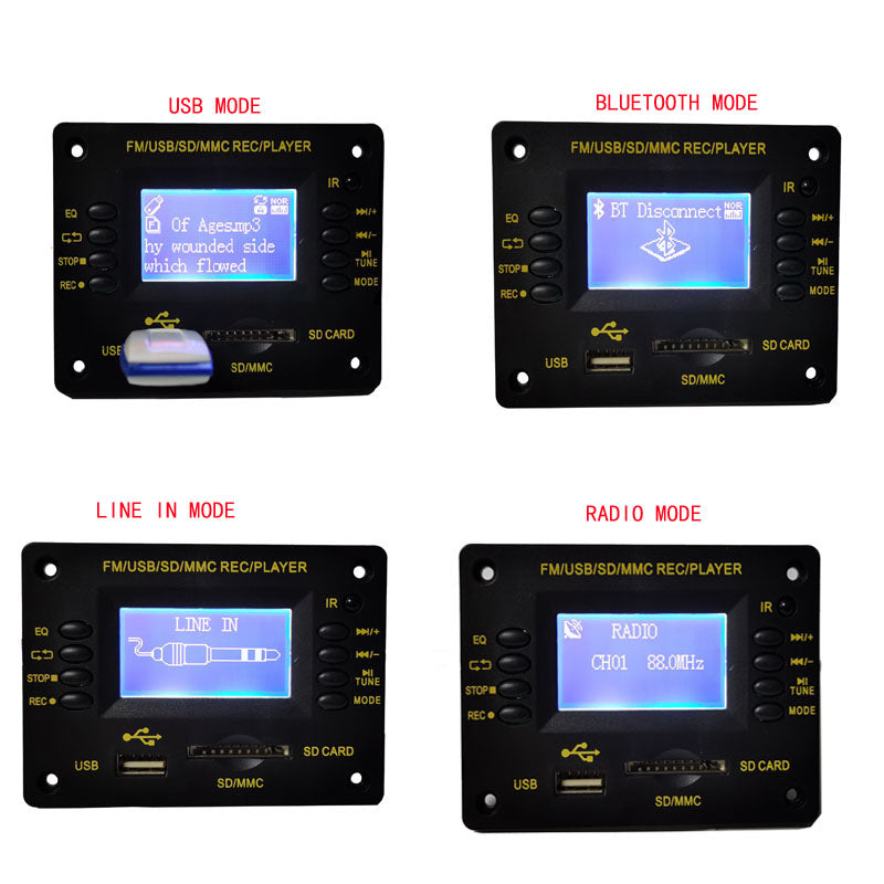 YXY-010 12V Bluetooth DAC MP3 Audio Decoder Board FM/USB/SD/MMC/ REC/PLAYER w/ Display Recording Function