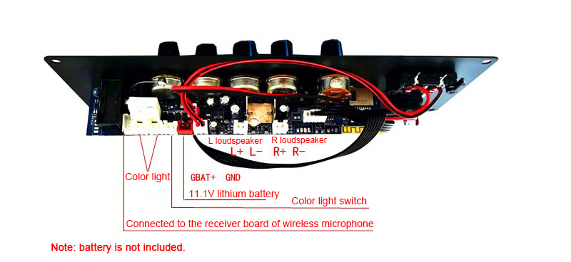 - Applicable power supply: 11.1V (more than 3A) lithium battery with protection board