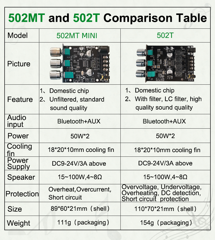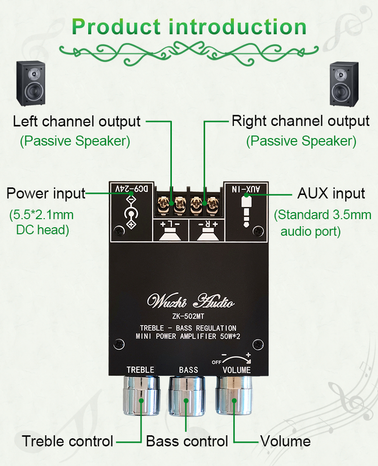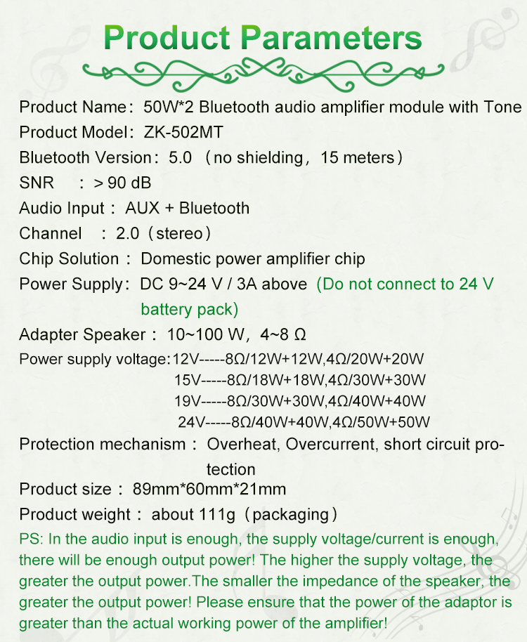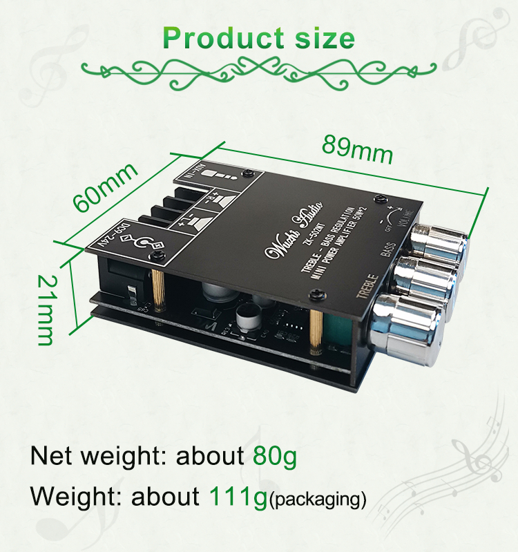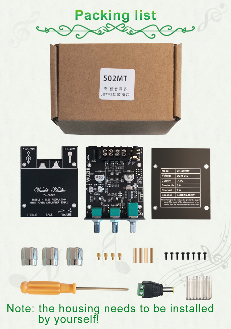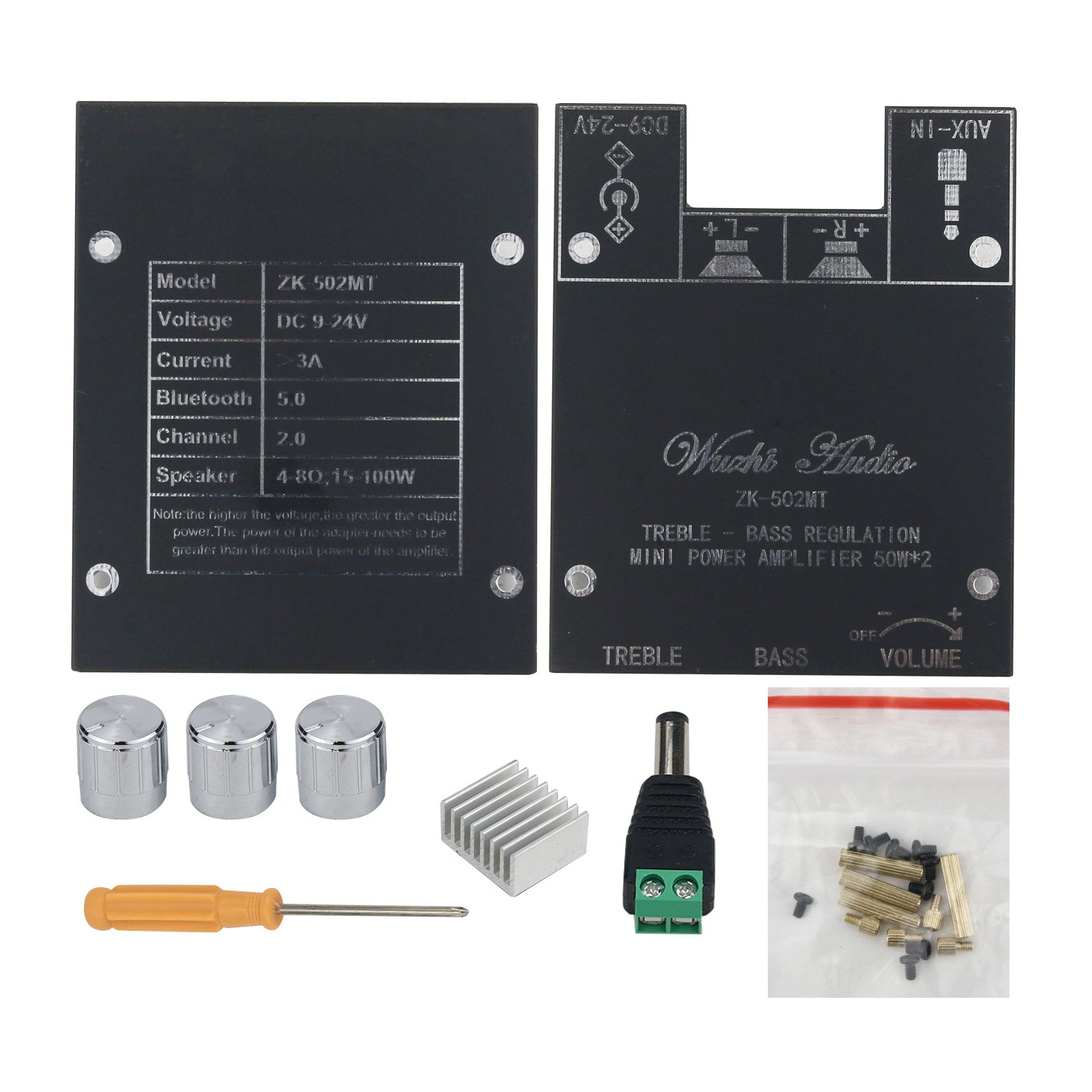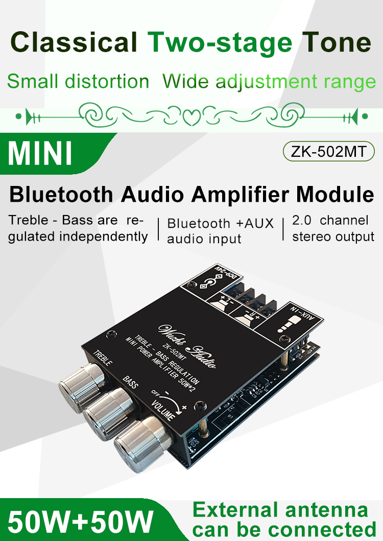 ZK-502MT Mini Power Amplifier 50Wx2 Stereo Bluetooth Amplifier Board Unassembled w/ Treble Bass