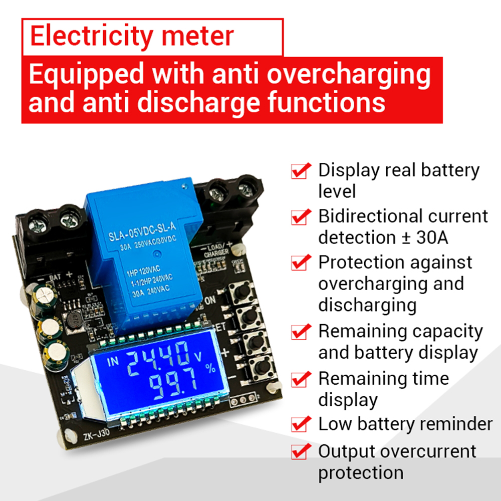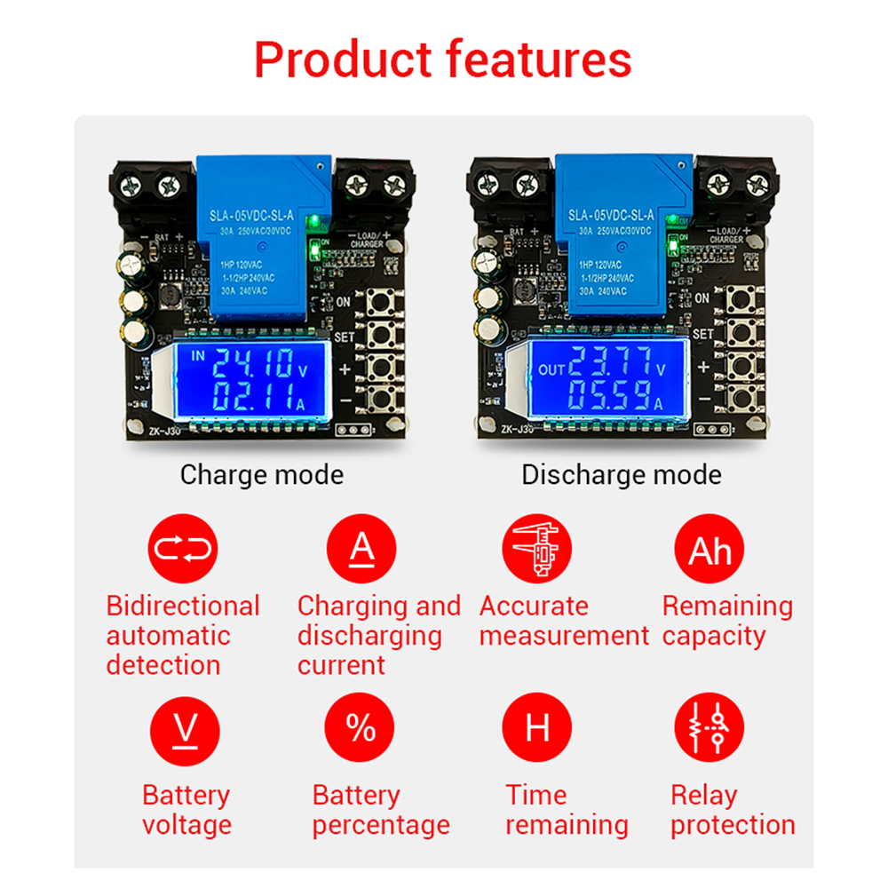 ZK-J30 30A Coulometer Battery Charging Control Board Bidirectional Automatic Detection for Over-charging Protection