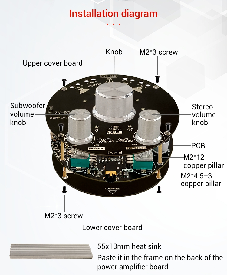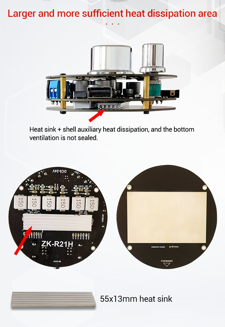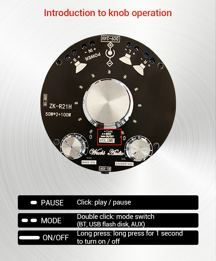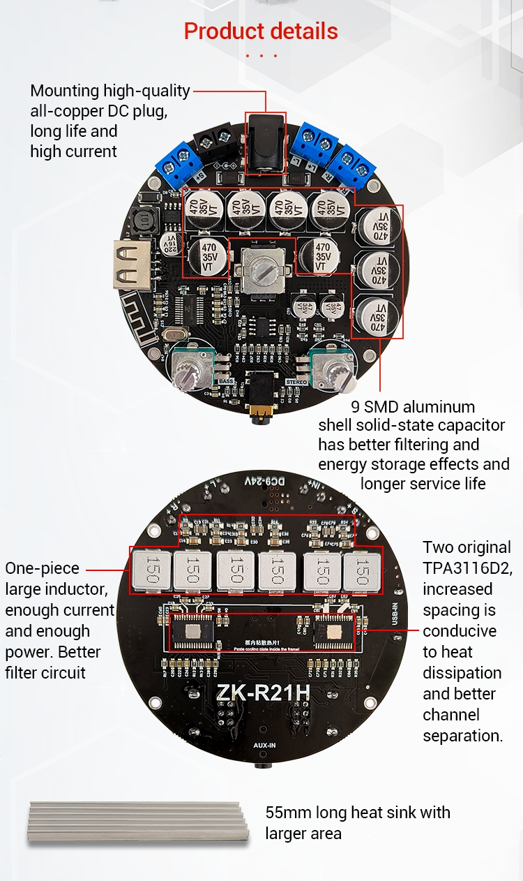ZK-R21H 2.1 Channel Amplifier Bluetooth Amplifier Board TPA3116D2 with Volume Indicator Bass Treble