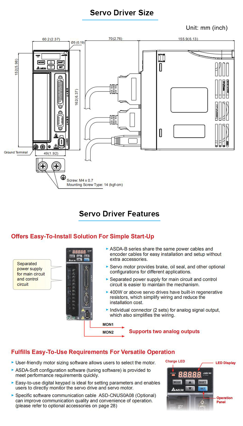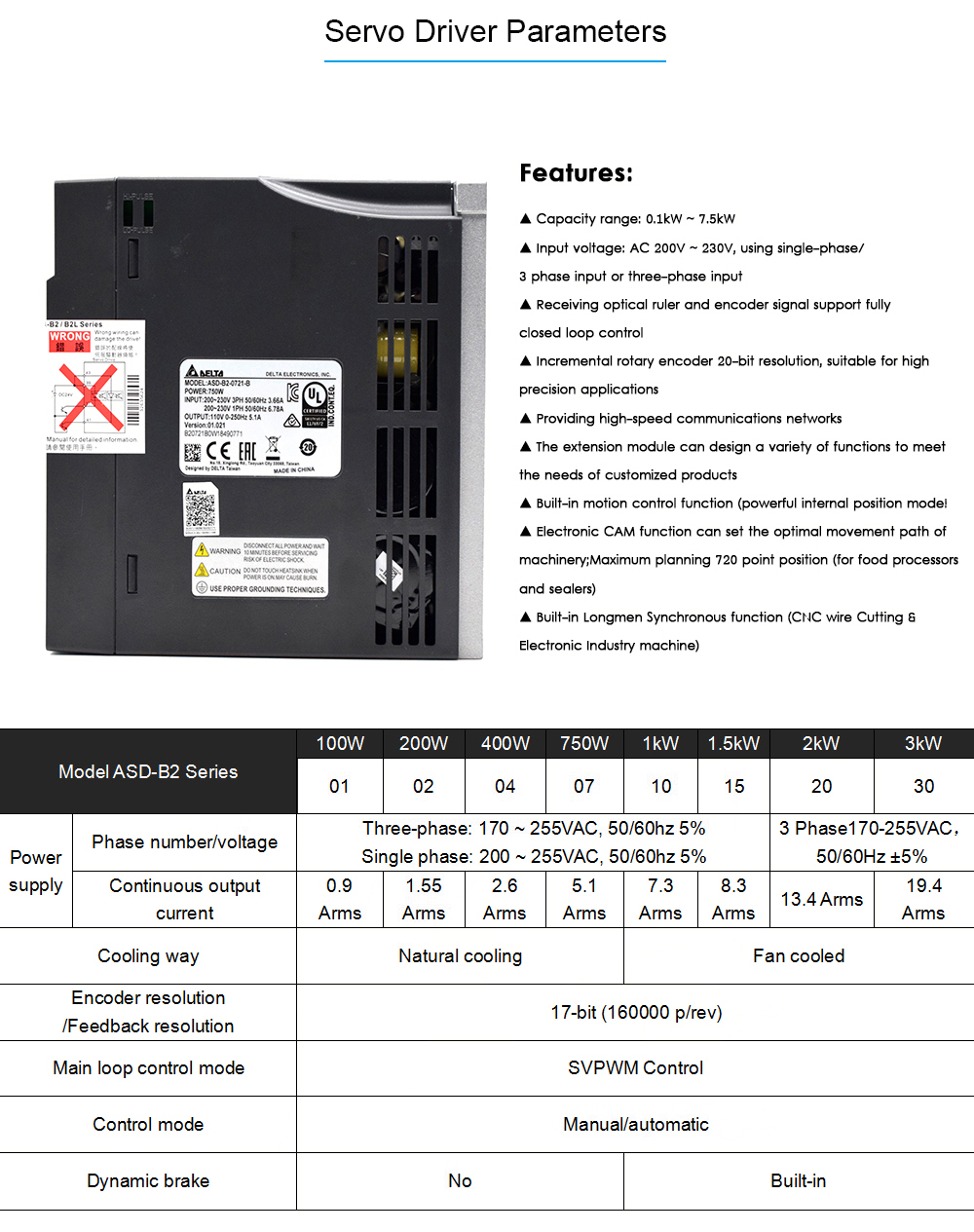 Delta 400W ECMA-C20604RS Servo Motor + ASD-B2-0421-B Motor Driver + Power Cable + 3M/9.8FT Encoder Cable