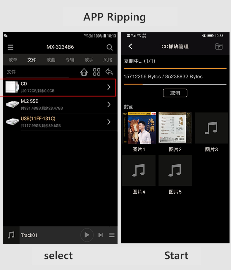 - CD ripping also needs to solve the supporting information such as album cover, song name, etc. We have made a set of simple and practical management software to solve the supporting information of CD ripping according to actual needs. As long as the user who knows how to use mobile phones can take pictures through mobile phones. Album cover, support multiple album cover display at the same time (in fact, it can display the basic information of the front and back album cover), you can also edit the CD album name on the APP, so there is no need to find the CD supporting information on the Internet, and there is no need to worry about the ripping information does not match the CD.