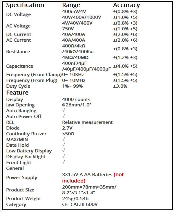 Digital Clamp Multimeter AC DC Current Voltage Capacitor Resistance Frequency Tester Meter 4000 Counts MS2108A