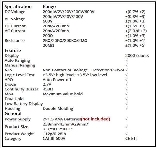 Digital Multimeter Auto Ranging Non Contact Voltage Clamp Meter Tester Diode Continuity Logic Test Aimotool AMS8211D