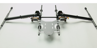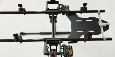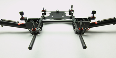 The retractable landing gear, another innovative design from DJI, is designed for the S800 Hex-copter in order to provide a better perspective in aerial-filming / photography work. By using a 2-position switch channel of the R/C transmitter, you can control the landing gear to retract remotely. The retractable landing gear will not block the view of the camera lens, making smooth shooting in all directions possible.
