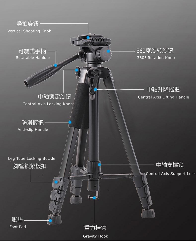 DM67 170CM Portable Multifunctional Professional Photography Tripod 360-degree Panoramic Gimbal Camera Tripod