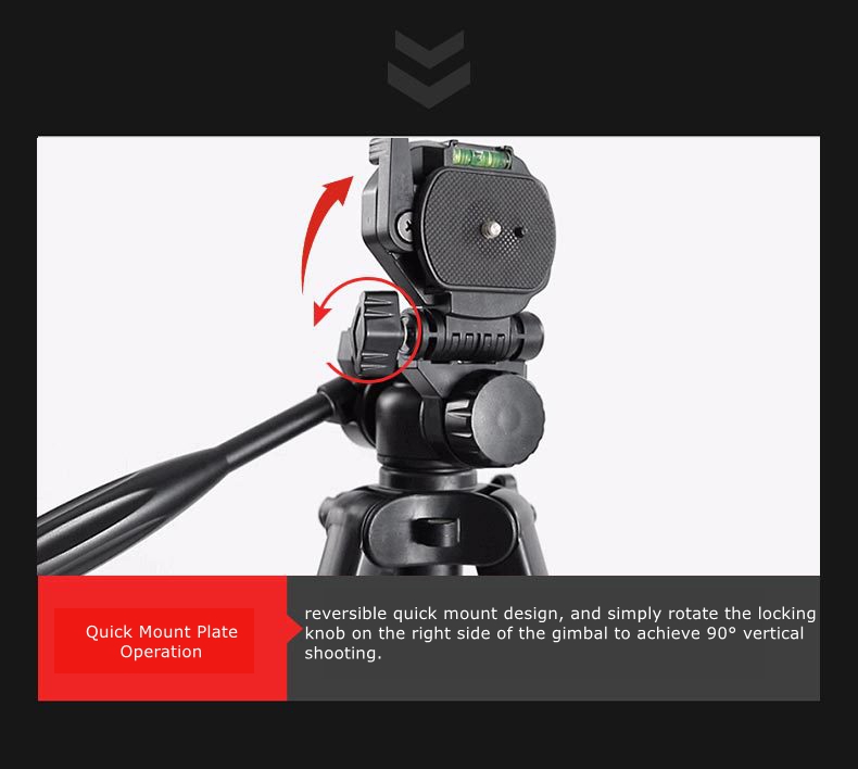 - Quick mount operation: the quick mount design can be flipped, and simply rotate the locking knob on the right side of the gimbal to achieve 90° vertical shooting.