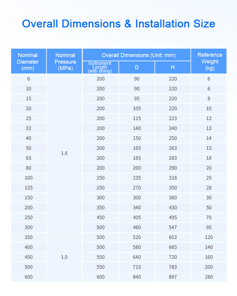 * Measurement Range: 1500:1, flow velocity < 15m/s