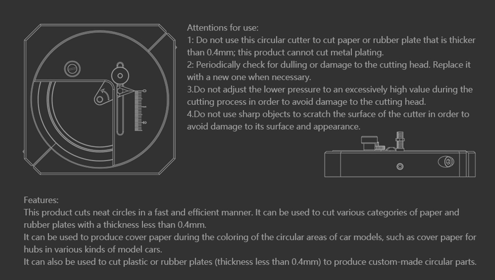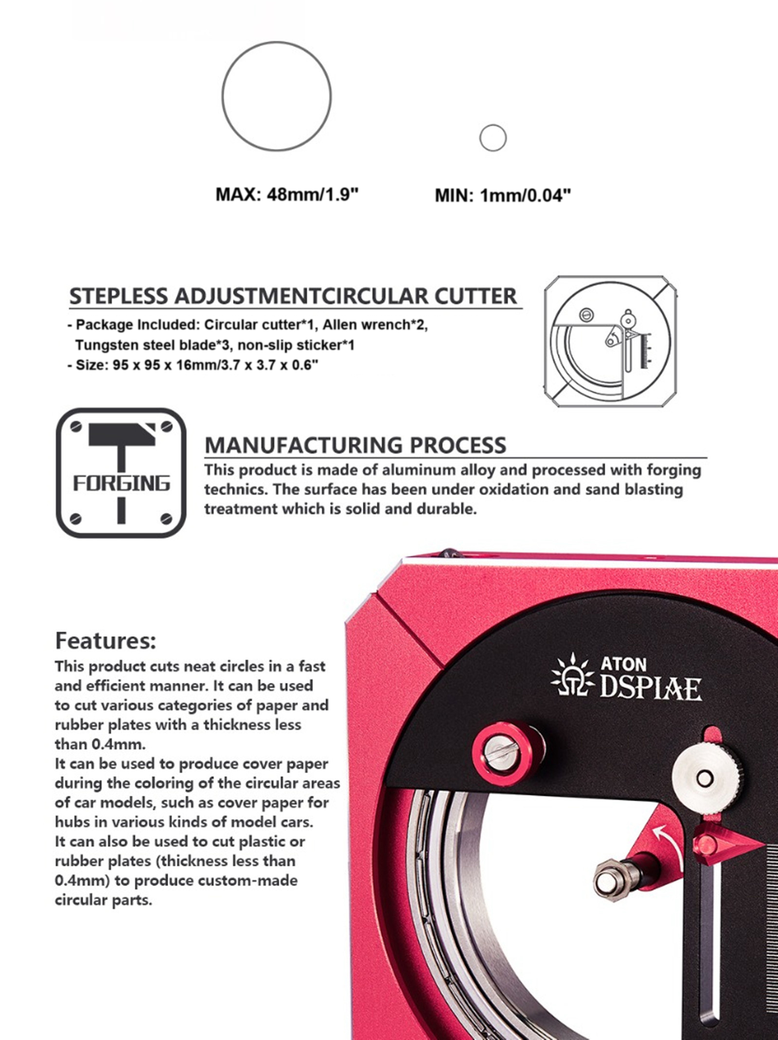 DSPIAE MT-C Stepless Adjustment Circular Cutter Circle Cutter Cutting Dedicated Craft Tools Hobby Accessories