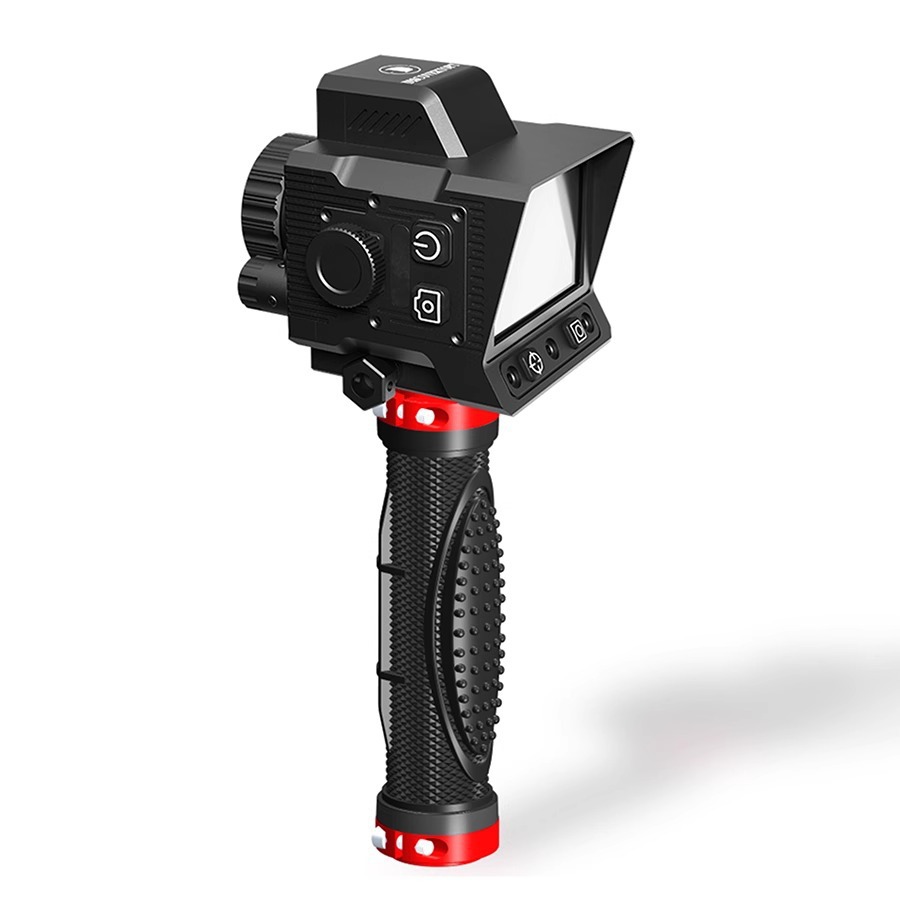 - The thermal imaging sighting device is equipped with a 12um high-sensitivity detector, resolution of 256x192, paired with a 19MM all germanium infrared lens, an open 2.4-inch 600x450 high-resolution AMOLED display screen, weighing 280g, length*width*height: 85*75*81.5mm (including quick release).