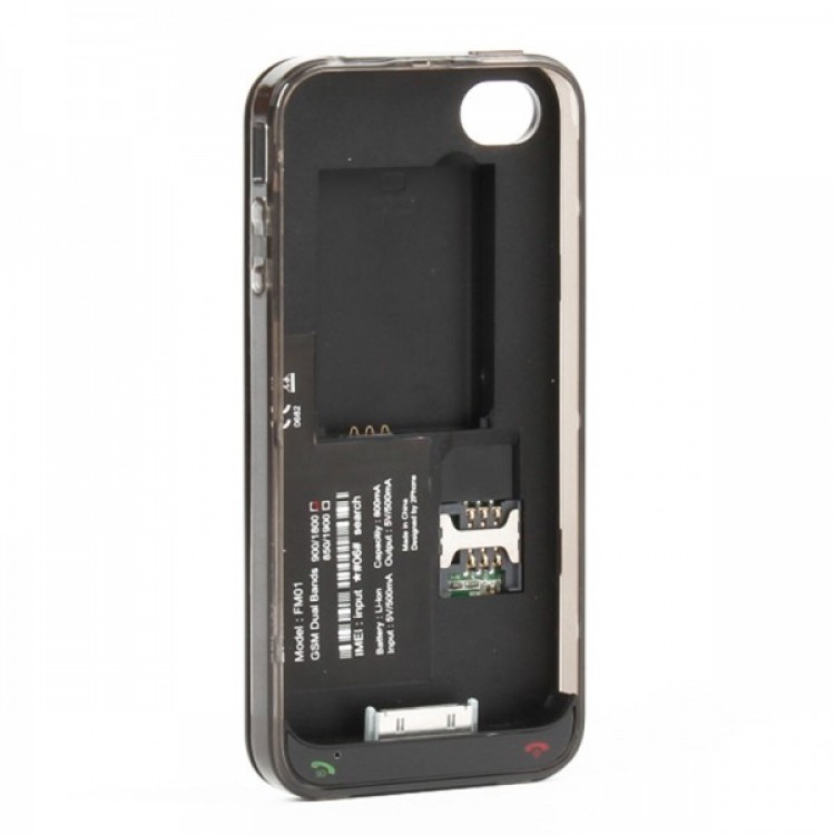 Dual SIM Card Dual Standby Convertor Case with 800mAh Battery for iPhone 4 - Black