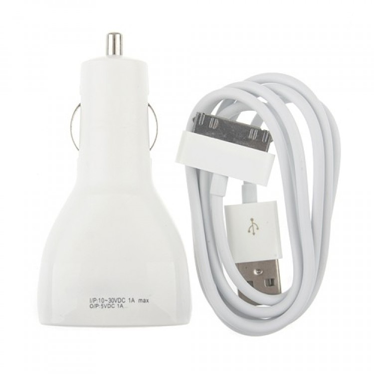 Dual USB design, can charge two devices at the same time Stable and high speed Light weight and small size for easy carry Output: DC 5.0V-1000mA Weight: 23g Color: White Size: 8 x 4cm(L x W) Package included: 1 x Dual USB Car Charger 1 x USB Cable for iPhone/iPad