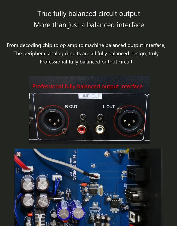 - Audio output amplitude: 2.4V (RCA); 4.5V (XLR)
