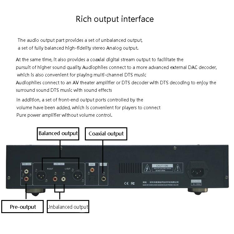Dugood Silvery CD-490 Fully Balanced HiFi CD Player WAV Lossless Music Player Audio Decoder (PCM1789 Decoding Chip)