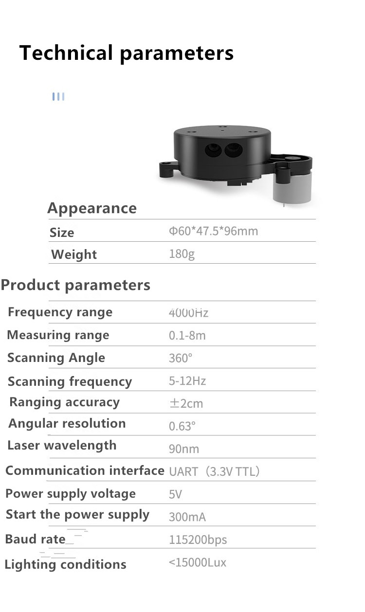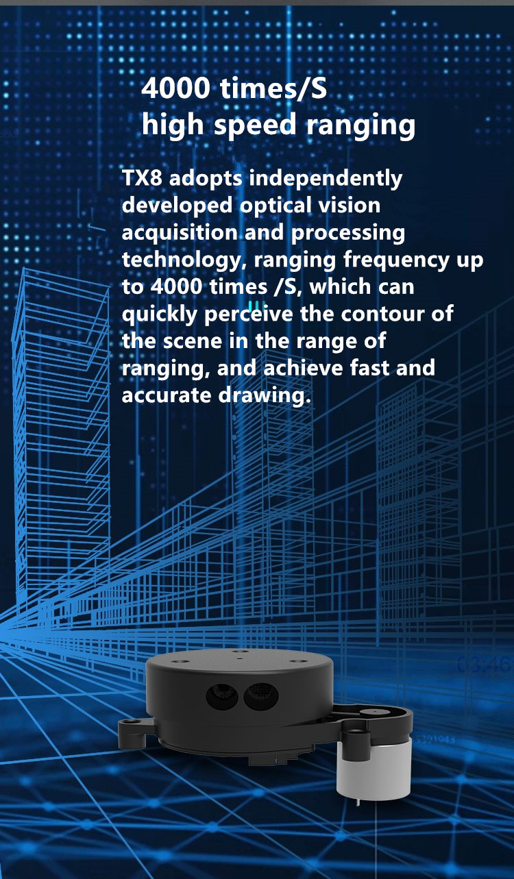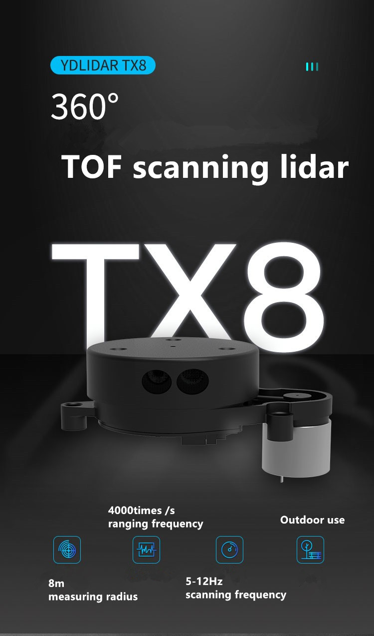 EAI YDLIDAR TX8 TOF Laser Radar 8m 4K Scanning Lidar Sensor Anti-glare Outdoor Use High-performance