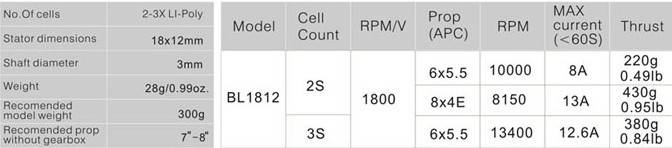 EMAX BL1812 Outrunner Brushless Motor 1800KV 28g Specifications: - No. Of cells : 2-3x Li-Poly - RPM/V : 1800 - Weight: 28g