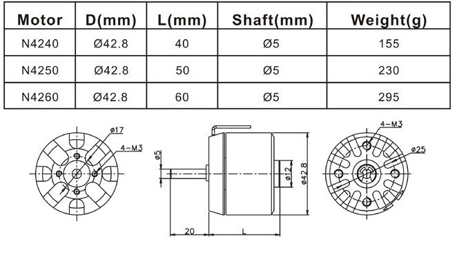 EMP Series N4250/06 High Efficiency 650KV Outrunner Brusheless Motor