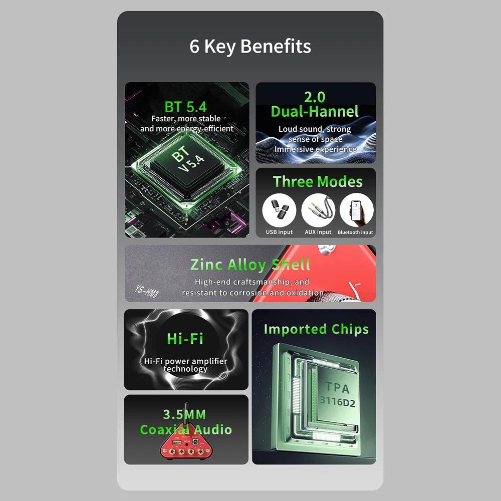 YS-HM3 50W+50W Bluetooth 5.4 HiFi Stereo Digital Power Amplifier TPA3116 Amplifier + Optional Power Adapter