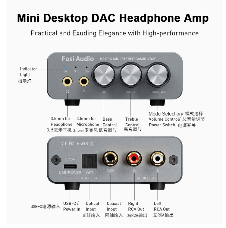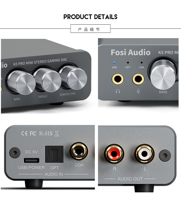 * Fosi Audio K5 PRO MINI stereo gaming DAC headphone amplifier
