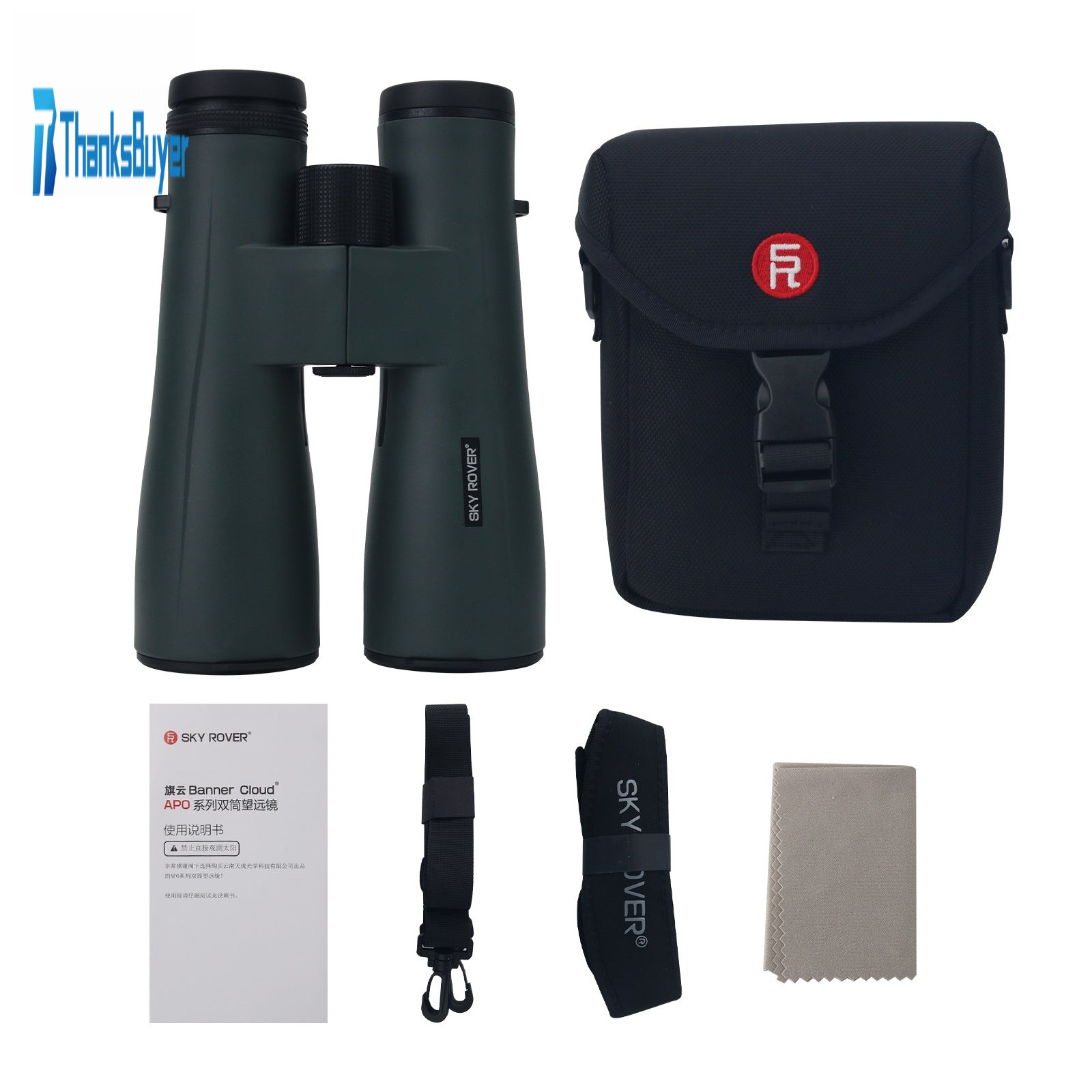 SKY ROVER Banner Cloud Series (8x42/10x42/10x50/12x50/12x56/15x56 APO) binoculars feature double ED glass elements that effectively reduce chromatic aberration and deliver bright, sharp images. The apochromatic optical structure ensures superior detail and color accuracy.