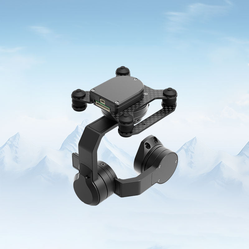 - Adopts a 3-axis orthogonal mechanical stabilization structure and is able to carry a payload equipment at a maximum weight of 200g.