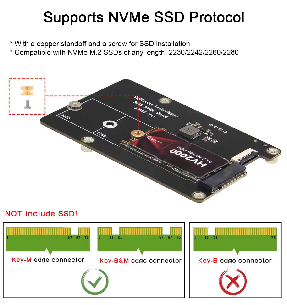 * Compatible with NVMe M.2 SSDs of any length: 2230/2242/2260/2280