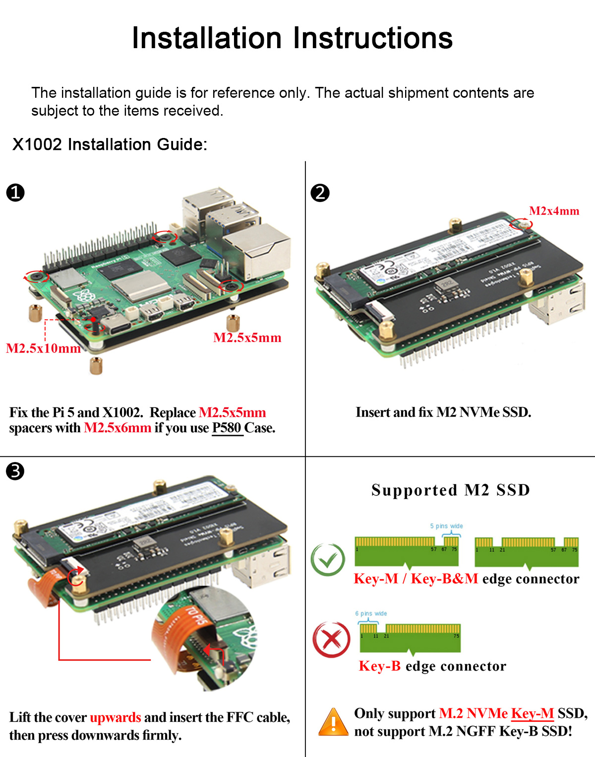 * X1002 hardware has no capacity limit for NVMe SSDs; actual capacity support depends on the Raspberry Pi operating system