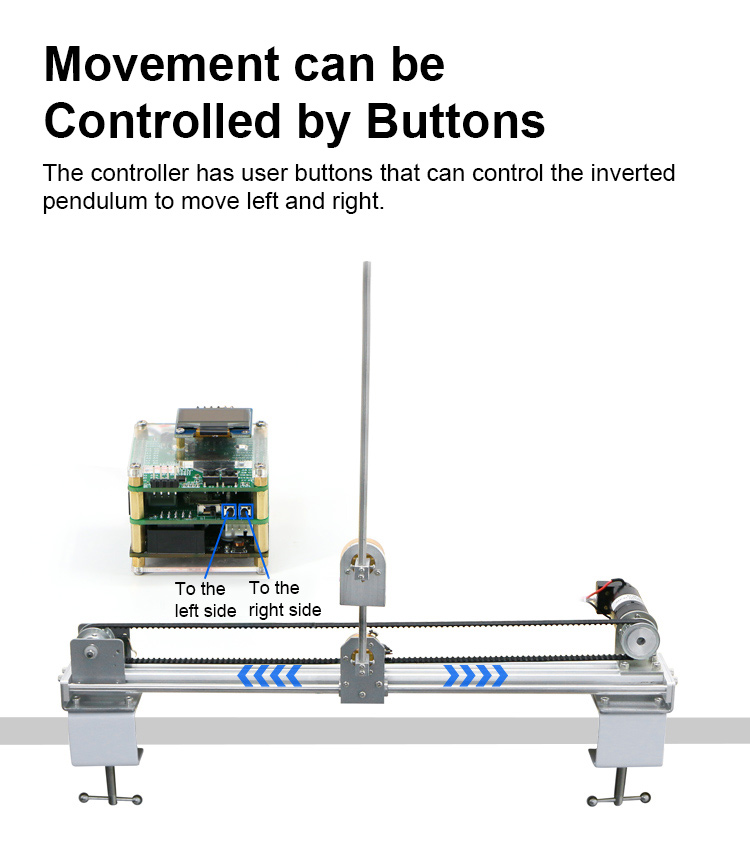 * Movement can be controlled by buttons: The controller has user buttons that can control the inverted pendulum to move left and right