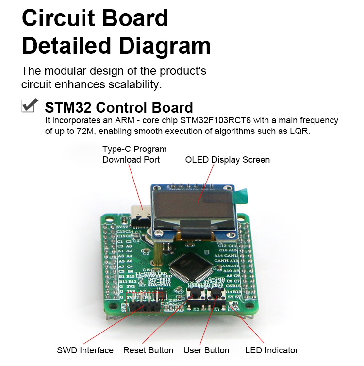 * The inverted pendulum is a high-order under-actuated control product with relatively complex overall hardware and software. WHEELTEC has invested a lot of R&D efforts in developing this product, and its code is fully open source. Users can quickly carry out secondary development of second-order under-actuated or intelligent control projects based on this product.